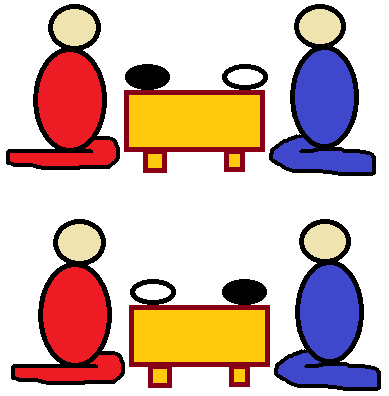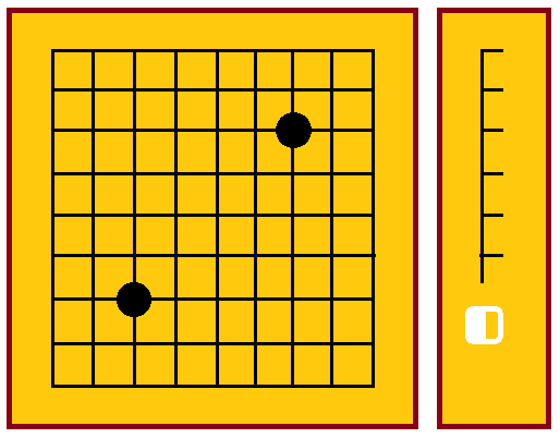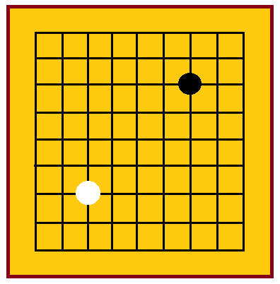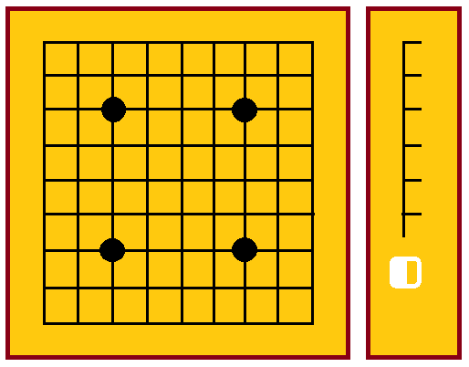 弱い方が 黒石 を持って、盤の上に予め 石が置いてあって