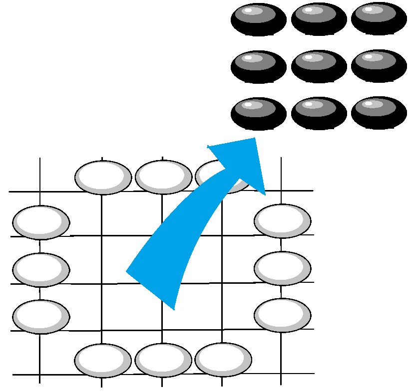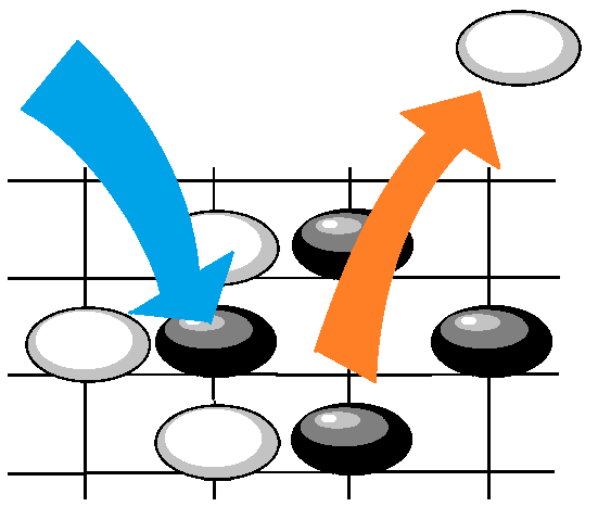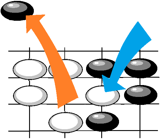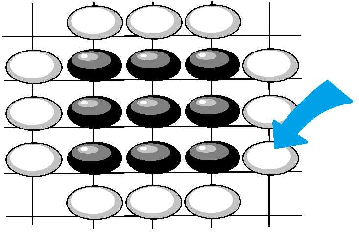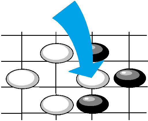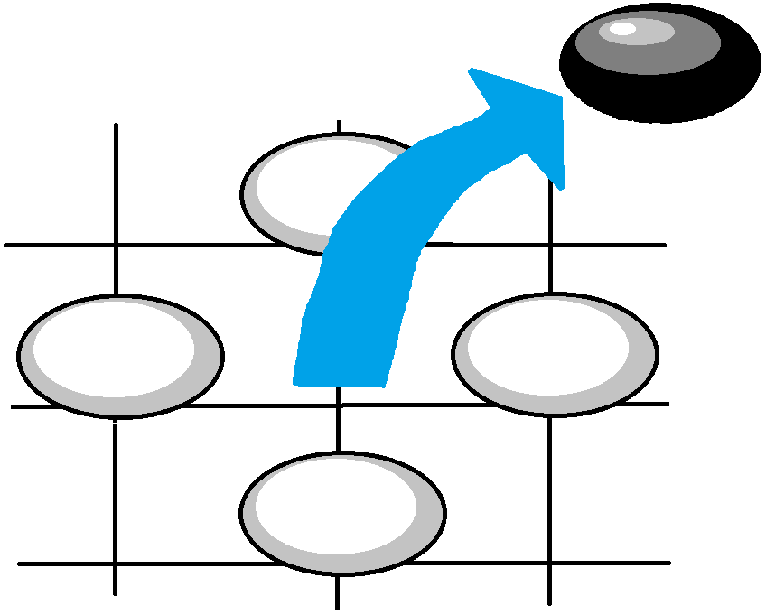 「 ↑ 呼吸できない石は 盤の上にいることはできない、というのがルールだぜ。