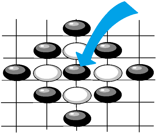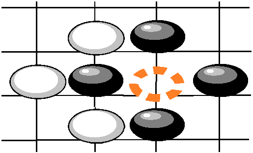 「 ↑ また逆に、四方向に相手の石がある真ん中が空いてても……」
