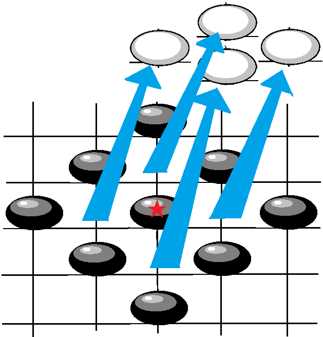 「 ↑ 盤の真ん中の方にいても、隣に 相手の石があると そっちの方向へは