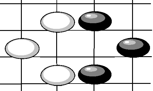「 白石に3方向を囲まれてしまっても、隣接する仲間が呼吸してくれれば OKだぜ」