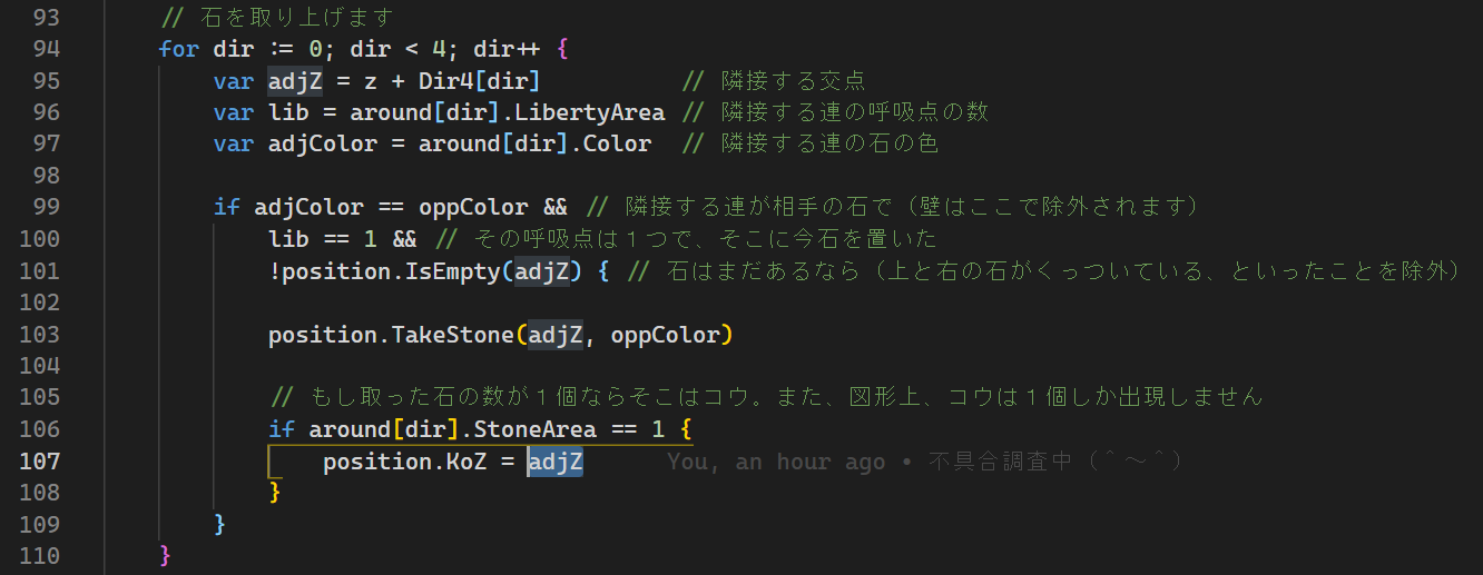 呼吸のできない石が盤上に居ることはできない からだぜ」